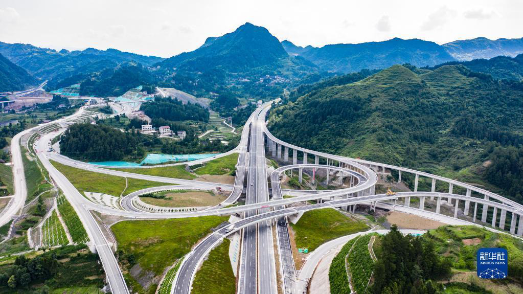这是贵州石阡至玉屏高速公路花桥互通(2021年6月17日摄,无人机照片)。新华社记者 陶亮 摄