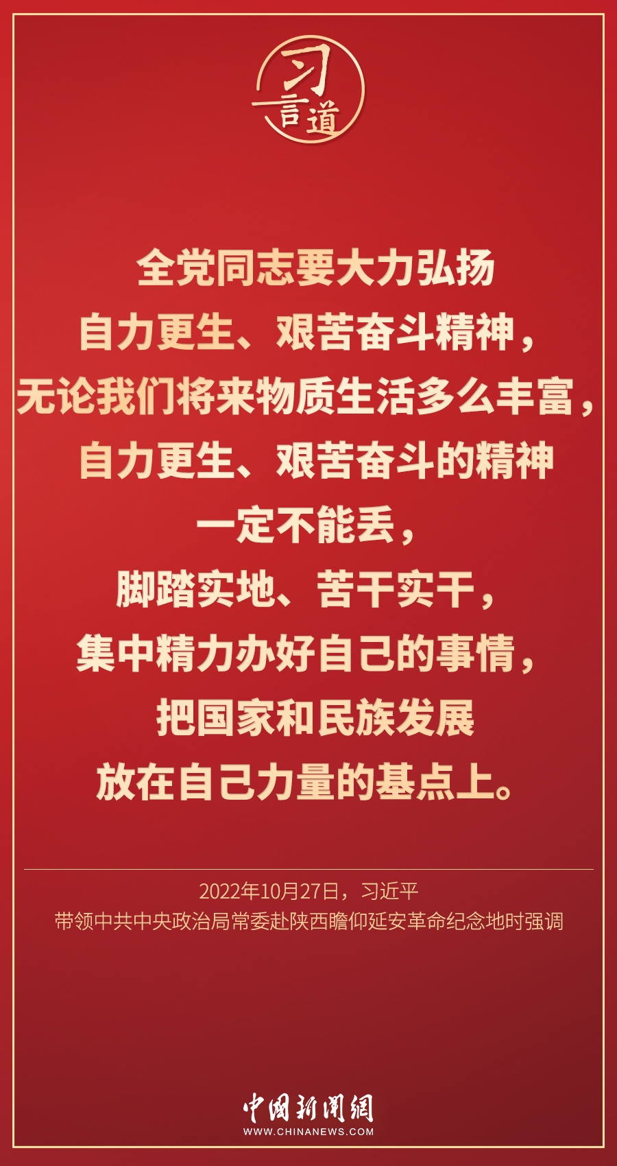 党的二十大闭幕不到一周,中共中央总书记、国家主席、中央军委主席习近平带领中共中央政治局常委李强、赵乐际、王沪宁、蔡奇、丁薛祥、李希,专程从北京前往陕西延安,瞻仰延安革命纪念地。此行中,习近平多次谈到延安精神——