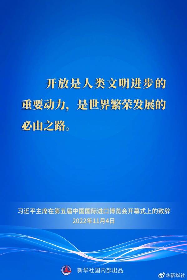 11月4日晚,国家主席习近平以视频方式出席在上海举行的第五届中国国际进口博览会开幕式并发表题为《共创开放繁荣的美好未来》的致辞。一起来看要点。