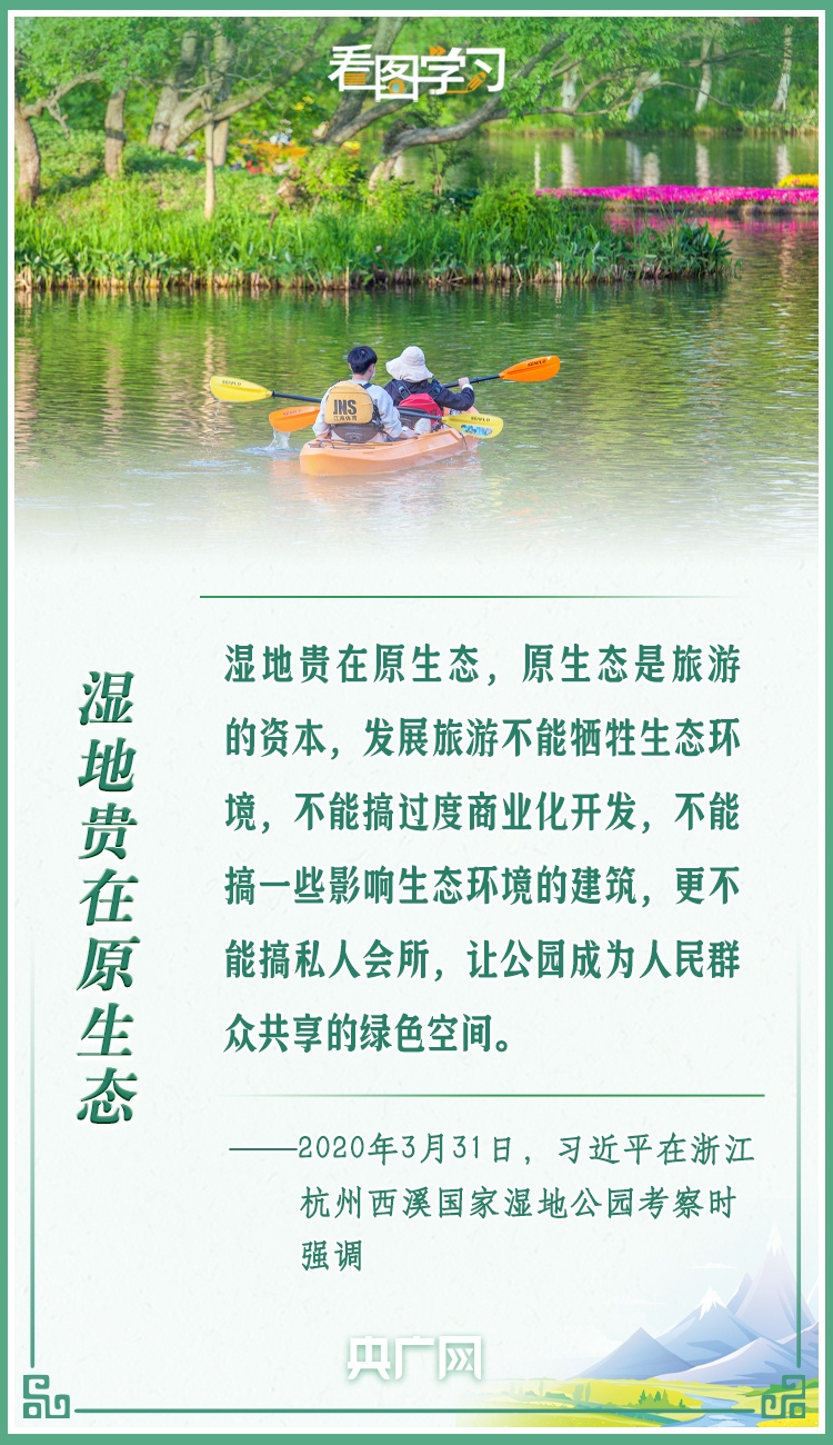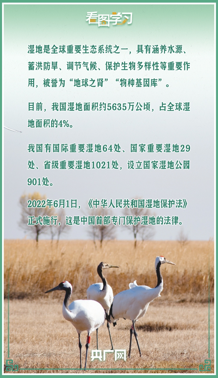 湿地被称为“地球之肾”,是全球重要生态系统之一。党的十八大以来,以习近平同志为核心的党中央坚持绿水青山就是金山银山的理念,坚持山水林田湖草沙一体化保护和系统治理,全方位、全地域、全过程加强生态环境保护,把湿地保护和修复作为生态文明建设的重要内容来抓。习近平总书记在云南昆明滇池、浙江杭州西溪国家湿地公园、山东东营黄河入海口等地考察调研时,多次强调要保护好湿地。一起来学习!