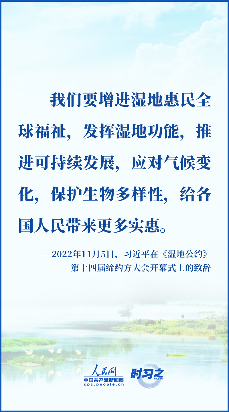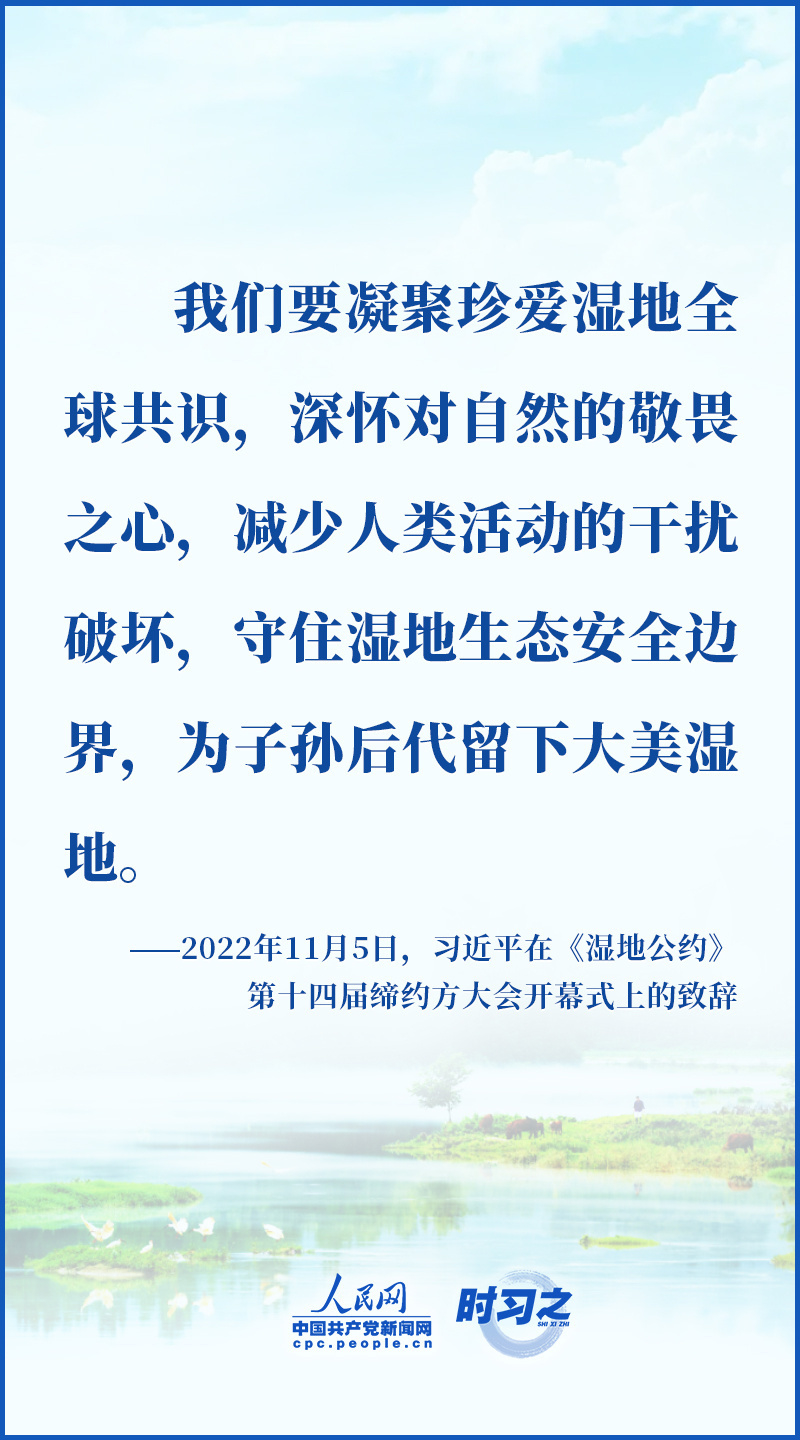 11月5日下午,国家主席习近平以视频方式出席在武汉举行的《湿地公约》第十四届缔约方大会开幕式并发表题为《珍爱湿地 守护未来 推进湿地保护全球行动》的致辞。新形势下,如何共同推进湿地保护全球行动,习近平提出三点倡议。