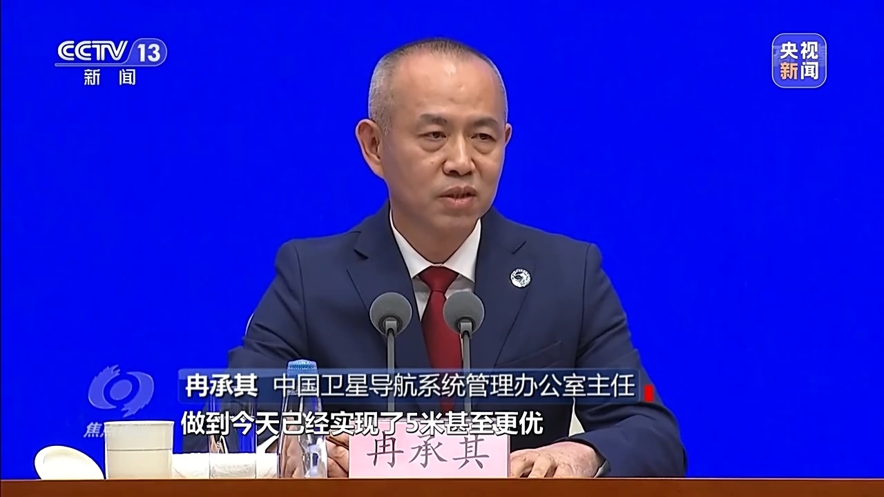 中国卫星导航系统管理办公室主任 冉承其:北斗系统对外承诺的服务指标是10米定位精度,做到今天已经实现了5米,甚至更优,在局部地区可以达到2到3米的定位精度,我们的授时精度对外服务的承诺是20纳秒,现在可以提供10纳秒授时精度。