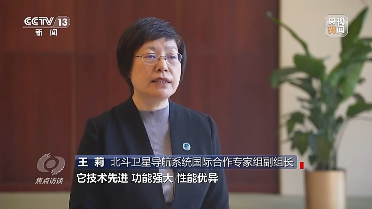 北斗卫星导航系统国际合作专家组副组长 王莉:从星座构型、技术体制、功能服务等方面都有着创新设计,它技术先进、功能强大、性能优异,全面优于系统的设计指标。