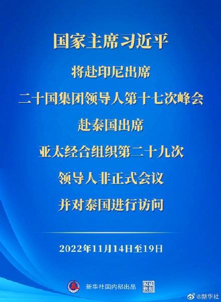 应泰王国总理巴育邀请,国家主席习近平将于11月17日至19日赴泰国曼谷出席亚太经合组织第二十九次领导人非正式会议并对泰国进行访问。