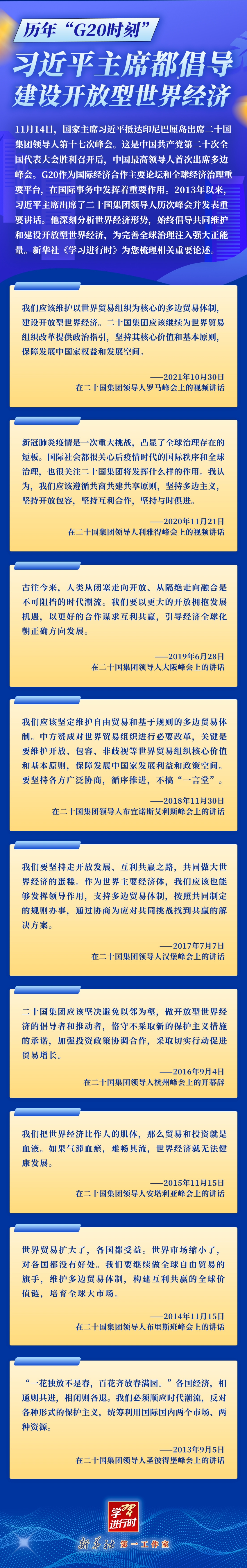 学习进行时丨历年“G20时刻”,习近平主席都倡导建设开放型世界经济
