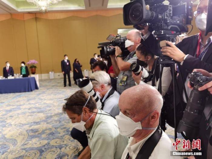当地时间11月14日下午,中国国家主席习近平将在巴厘岛中国代表团驻地同美国总统拜登举行会晤。图为中美元首会晤现场的“长枪短炮”。中新社记者 郭金超 摄