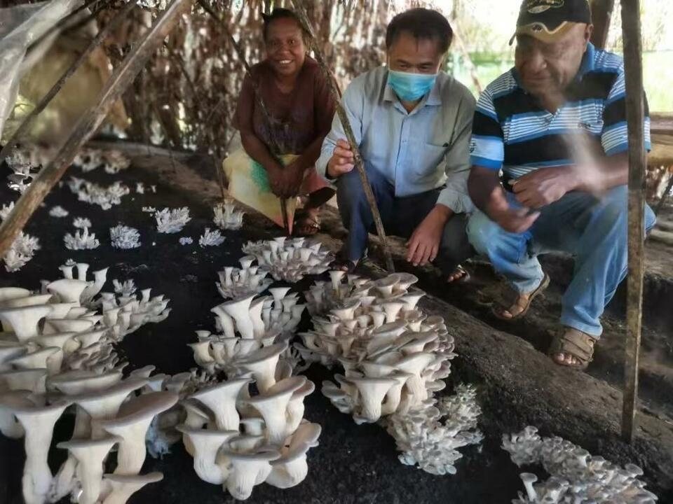 △中国援助的菌草种植蘑菇技术和产业链提高了巴布亚新几内亚的农业可持续发展能力。