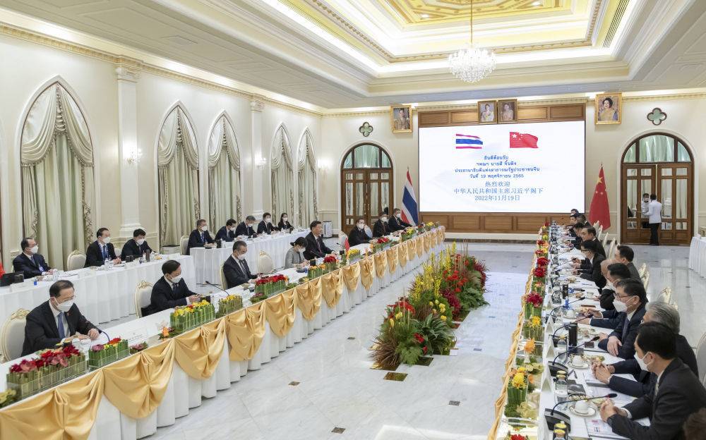习近平主席强调,我们站在新的历史起点上,愿同泰方弘扬“中泰一家亲”特殊情谊,构建更为稳定、更加繁荣、更可持续的中泰命运共同体,赋予“中泰一家亲”新的时代内涵,开辟中泰关系新时代,为两国人民带来更多福祉。