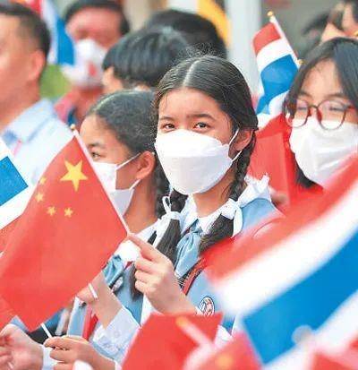 泰国街头,巨幅电子屏上一片“中国红”,中泰两国文字写着“热烈欢迎中华人民共和国主席习近平阁下和夫人彭丽媛教授”“中泰一家亲”,到处洋溢着热烈友好的情谊;华侨华人和中国留学生簇拥在街道两旁,欢呼“习主席好!”“欢迎习主席!”。