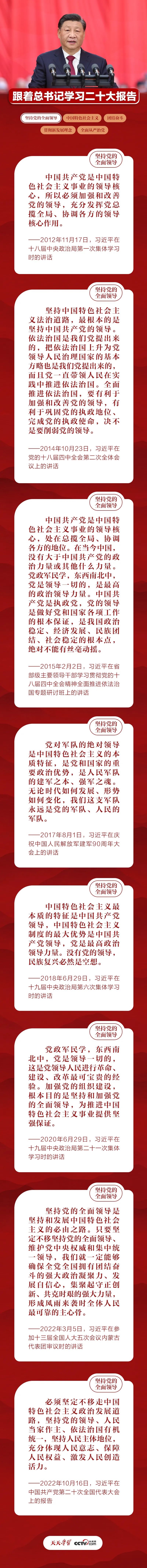 央视网《天天学习》特梳理总书记重要论述,与您一同深入理解“坚持党的全面领导是坚持和发展中国特色社会主义的必由之路”的内涵要义。