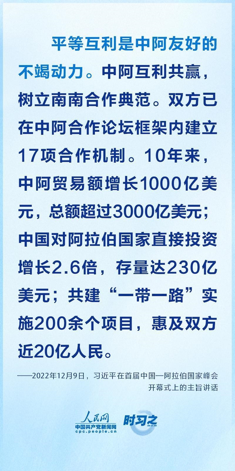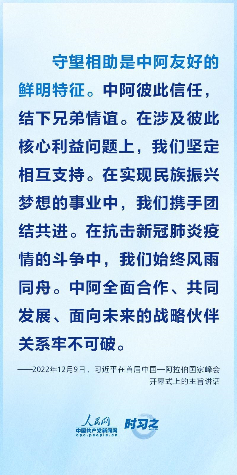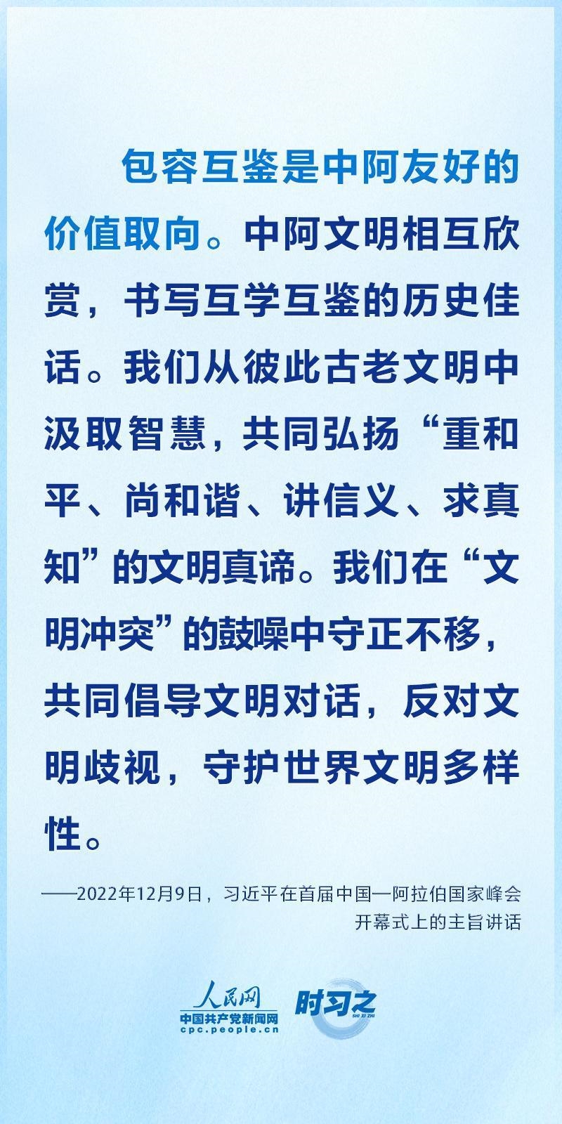 中国和阿拉伯国家友好交往源远流长,在主旨讲话中,习近平这样阐释“守望相助、平等互利、包容互鉴”的中阿友好精神。