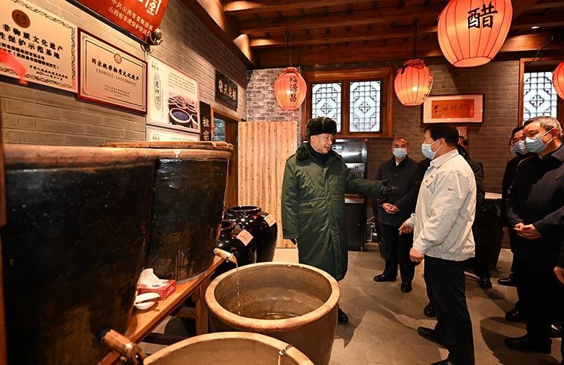 今年1月,习近平总书记在山西晋中市考察调研时,来到平遥古城。总书记沿街巷察看古城风貌,走进平遥牛肉店、推光漆器店、东湖老醋坊,了解当地文化遗产保护利用和开展特色经营情况,并购买了平遥牛肉、饺子醋等年货,还参与了陈醋发酵打耙。总书记指出,要保护好推光漆器等文化瑰宝,把富有民族特色的传统文化产业发扬光大、推向世界。