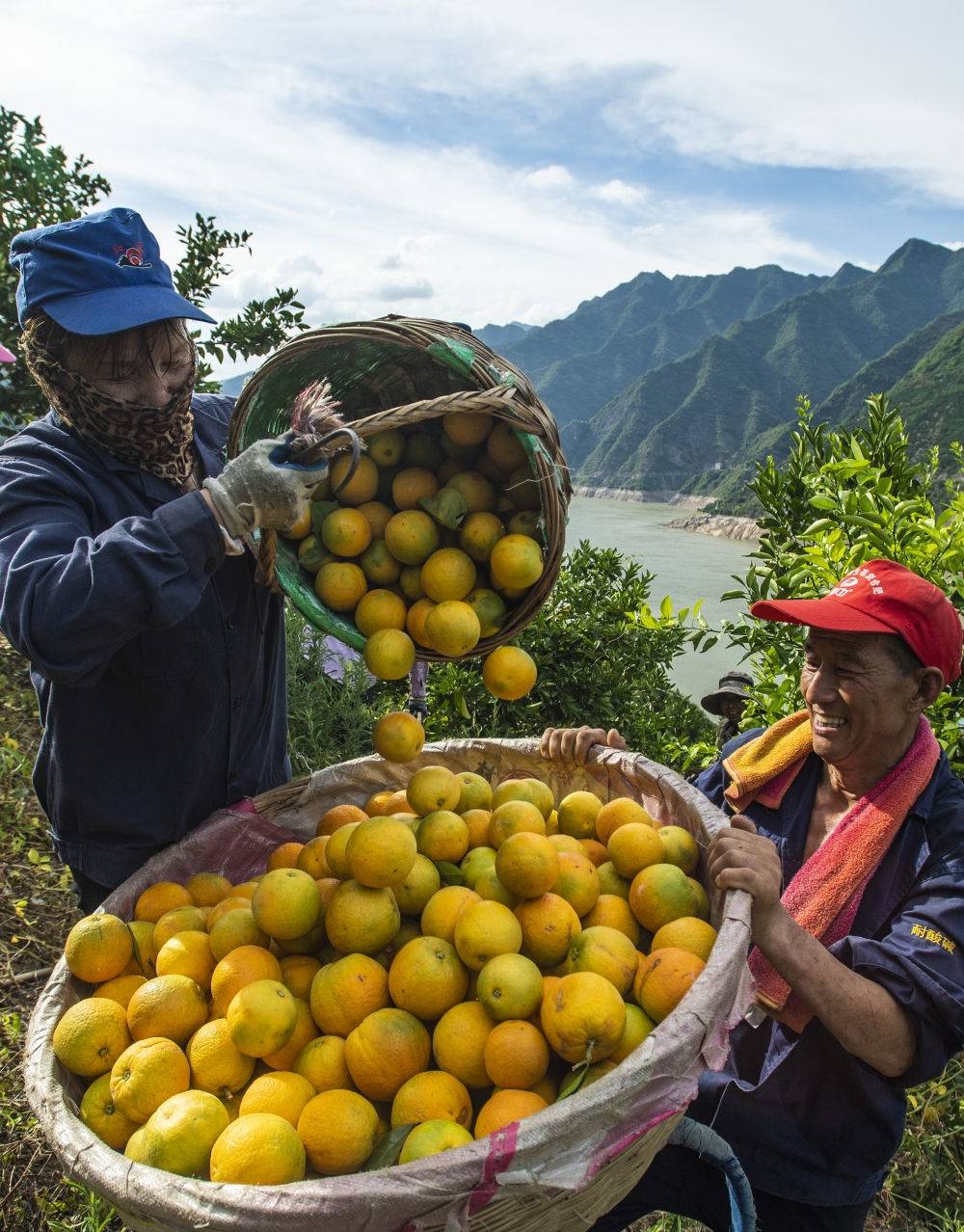 湖北省宜昌市秭归县沙镇溪镇台子湾村村民在柑橘园里转运夏橙(2022年6月21日摄)。新华社发(郑家裕 摄)