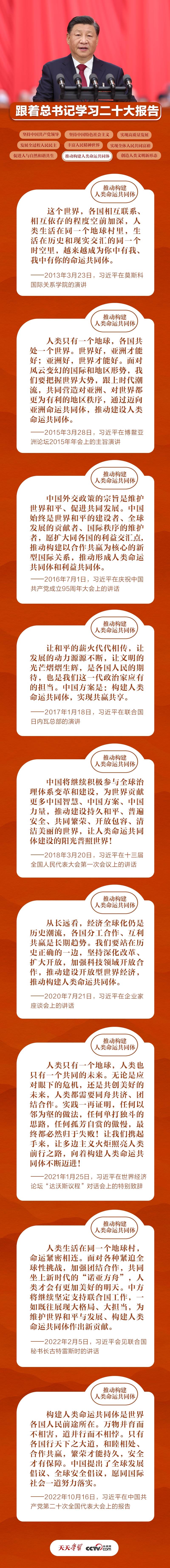 大道之行,天下为公。二十大报告正式将“推动构建人类命运共同体”列为中国式现代化的本质要求之一。党的十八大以来,习近平总书记深刻洞察“世界之变”,科学回答“世界之问”,创造性地提出并不断丰富发展构建人类命运共同体的重要思想,为人类社会实现共同发展、长治久安、持续繁荣指明了方向。央视网《天天学习》梳理相关重要论述,与您一同学习。