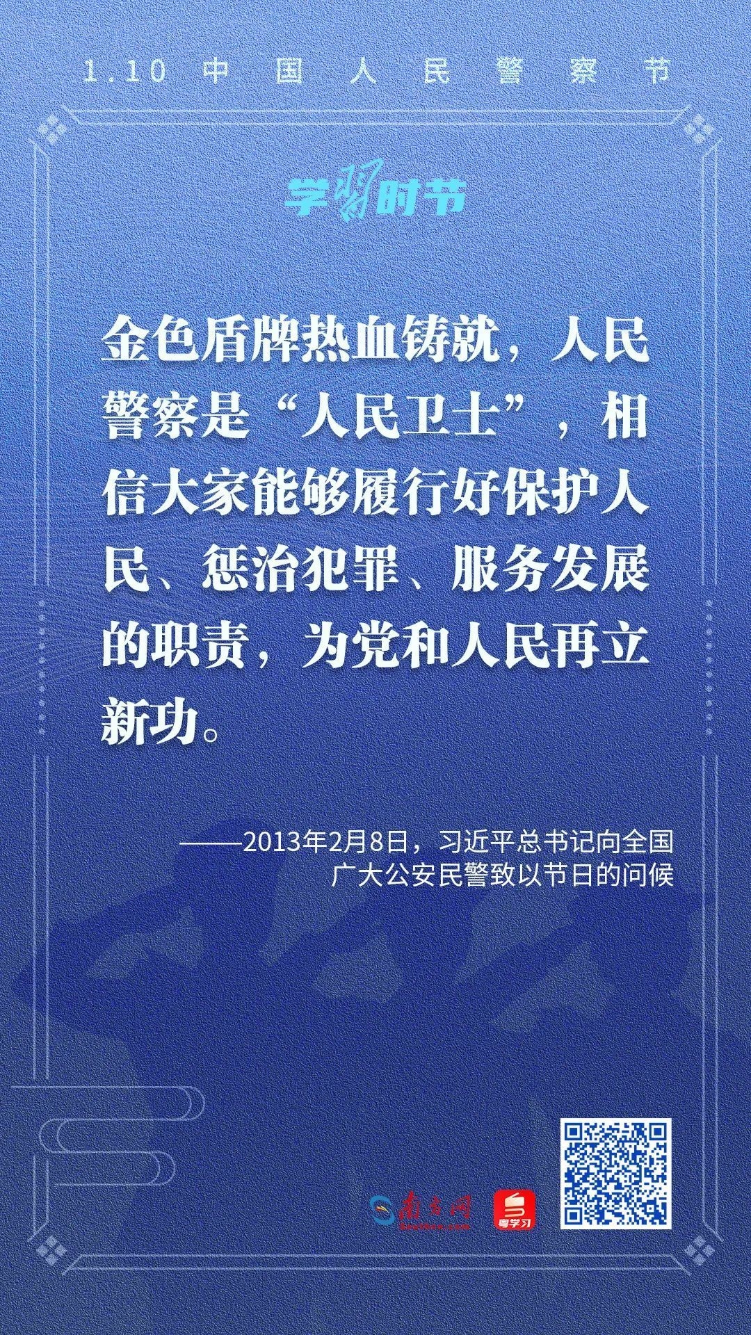 今天(1月10日)是第三个“中国人民警察节”,让我们通过一组海报,一起重温习近平总书记的重要论述,致敬人民警察,共同为建设更高水平的平安中国、法治中国贡献一份力量。