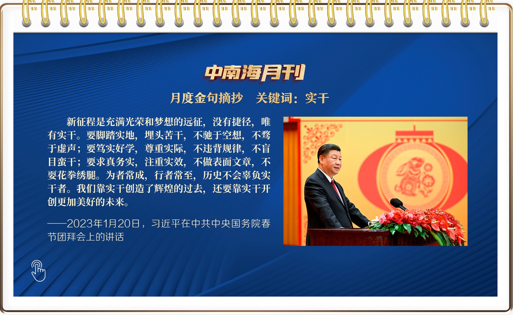 新征程是充满光荣和梦想的远征,没有捷径,唯有实干。正如习近平总书记在2023年春节团拜会上所说:“为者常成,行者常至,历史不会辜负实干者。我们靠实干创造了辉煌的过去,还要靠实干开创更加美好的未来。”