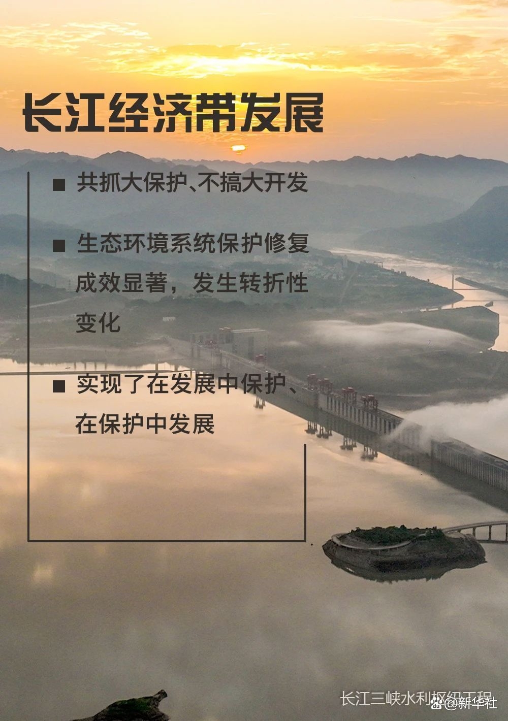 长江经济带发展坚持共抓大保护、不搞大开发,生态环境系统保护修复成效显著,发生转折性变化,实现了在发展中保护、在保护中发展;