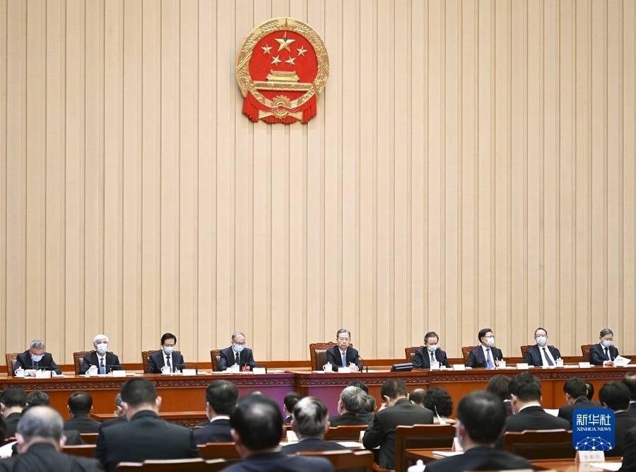 3月12日下午,十四届全国人大一次会议主席团在北京人民大会堂举行第九次会议。主席团常务主席赵乐际主持会议。新华社记者 谢环驰 摄