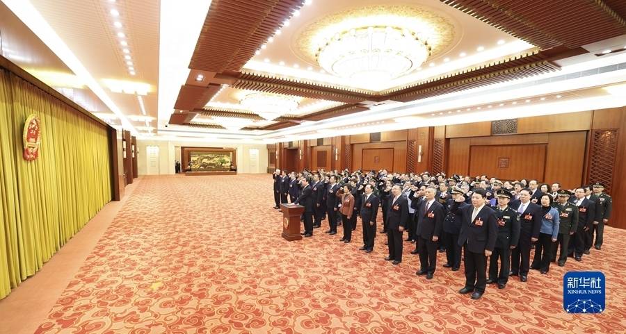 3月12日,十四届全国人大一次会议在北京人民大会堂举行第五次全体会议。会议分别表决通过十四届全国人大8个专门委员会组成人员名单。十四届全国人大设10个专门委员会。其中,宪法和法律委员会、财政经济委员会组成人员名单已于3月5日表决通过。这是十四届全国人大专门委员会组成人员进行宪法宣誓。