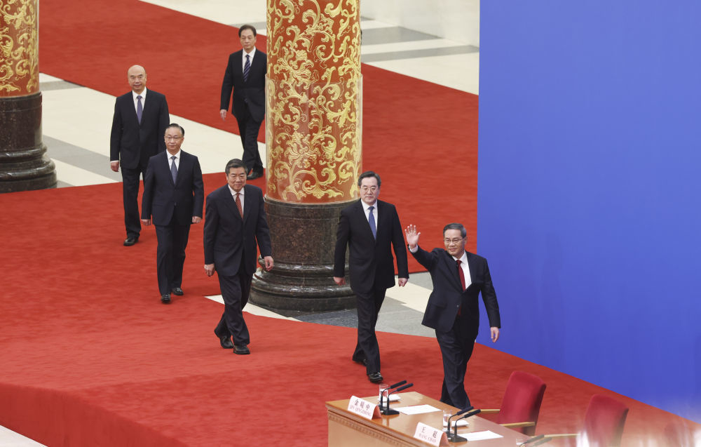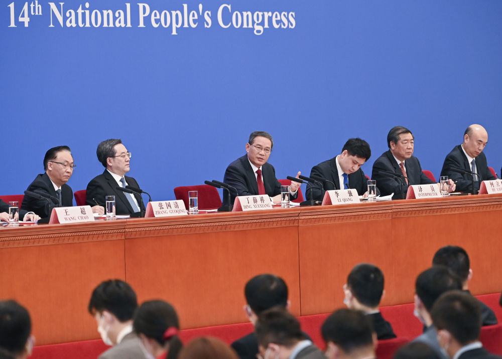 3月13日,十四届全国人大一次会议在北京人民大会堂举行记者会,国务院总理李强出席并回答中外记者提问。国务院副总理丁薛祥、何立峰、张国清、刘国中参加。新华社记者 陈建力 摄