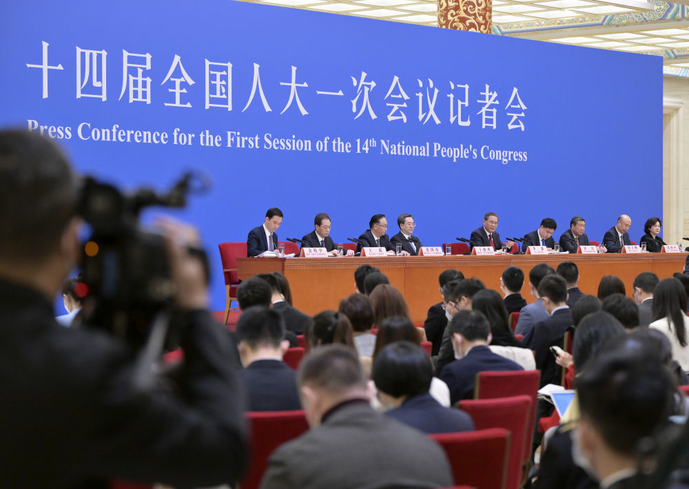3月13日,十四届全国人大一次会议在北京人民大会堂举行记者会,国务院总理李强出席并回答中外记者提问。国务院副总理丁薛祥、何立峰、张国清、刘国中参加。新华社记者 刘彬 摄
