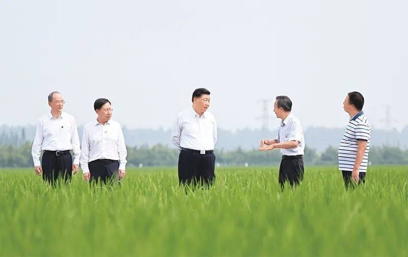 2022年6月8日,中共中央总书记、国家主席、中央军委主席习近平在四川考察。这是8日上午,习近平在眉山市东坡区太和镇永丰村高标准水稻种植基地考察,了解水稻试验育种和种植推广情况。 新华社记者 谢环驰/摄