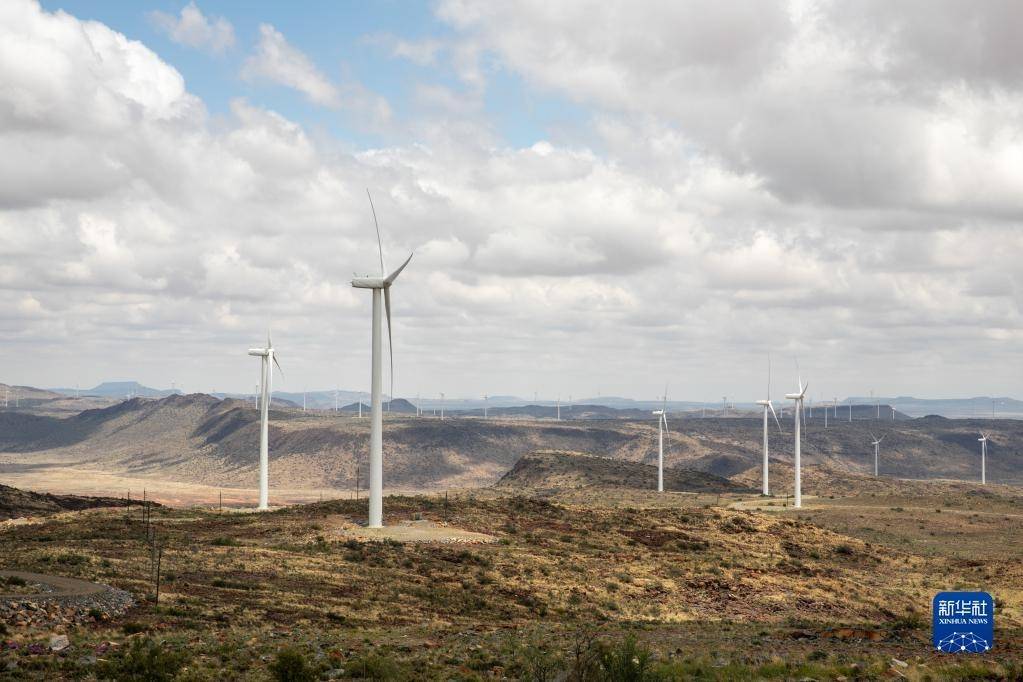 这是2021年11月22日在南非北开普省德阿镇拍摄的中国龙源电力集团南非公司运营的德阿尔风电项目风机。新华社记者 吕天然 摄