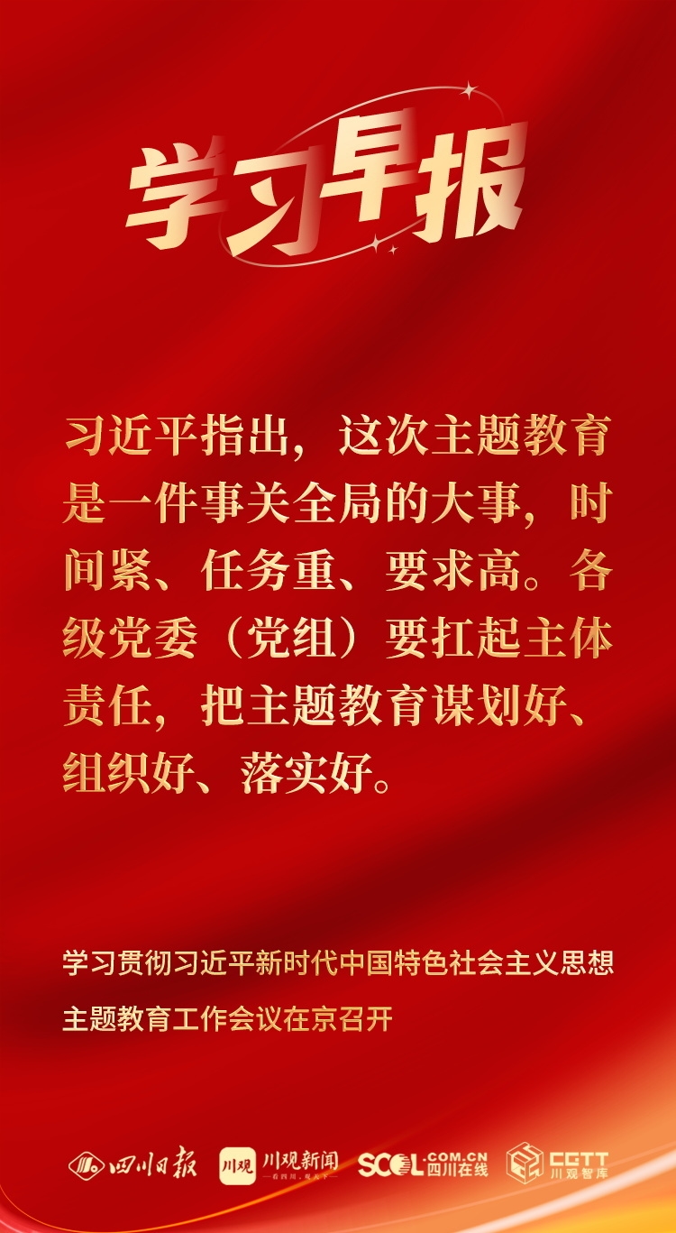 学习贯彻习近平新时代中国特色社会主义思想主题教育工作会议3日在北京召开。中共中央总书记、国家主席、中央军委主席习近平出席会议并发表重要讲话。(详细→学习贯彻习近平新时代中国特色社会主义思想主题教育工作会议在京召开 习近平发表重要讲话)