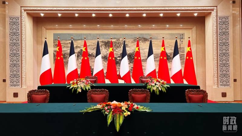 △中法两国元首在这里共同见证签署多项双边合作文件,并共同会见了记者。(总台央视记者张宇拍摄)