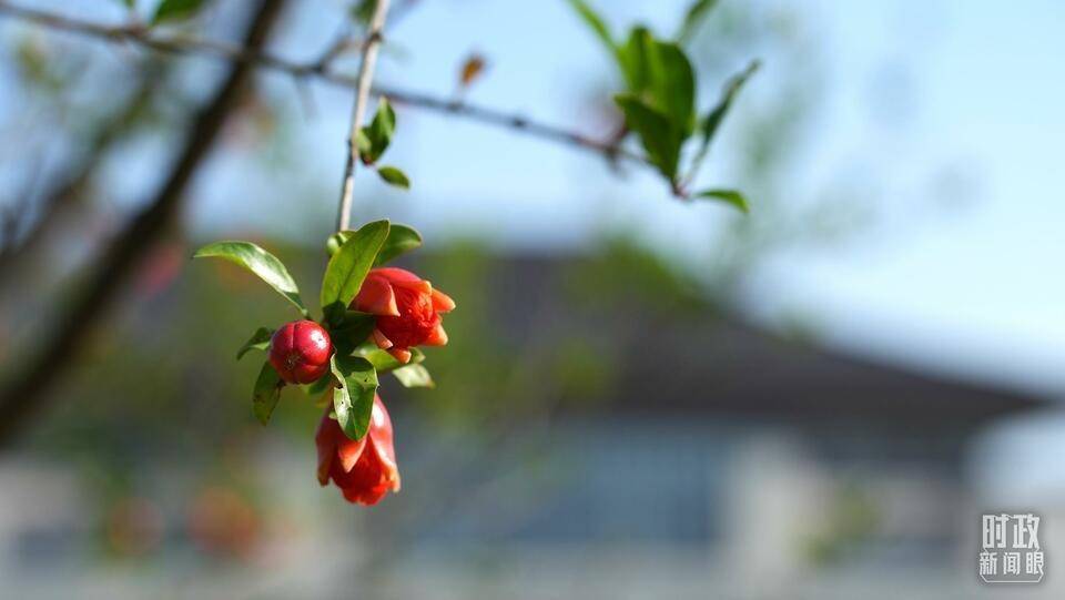 △ 峰会会场外,石榴花开红似火。(总台国广记者李晋拍摄)