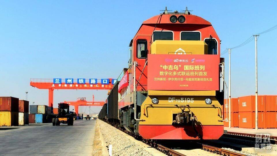 △ 2023年3月,甘肃首列数字化“中吉乌”国际多式联运货运班列发车。(图/视觉中国)