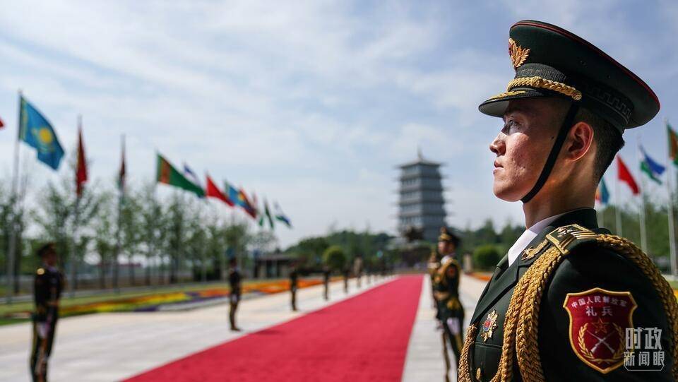 △ 迎宾红毯两侧,中国人民解放军礼兵就位。(总台国广记者李晋拍摄)