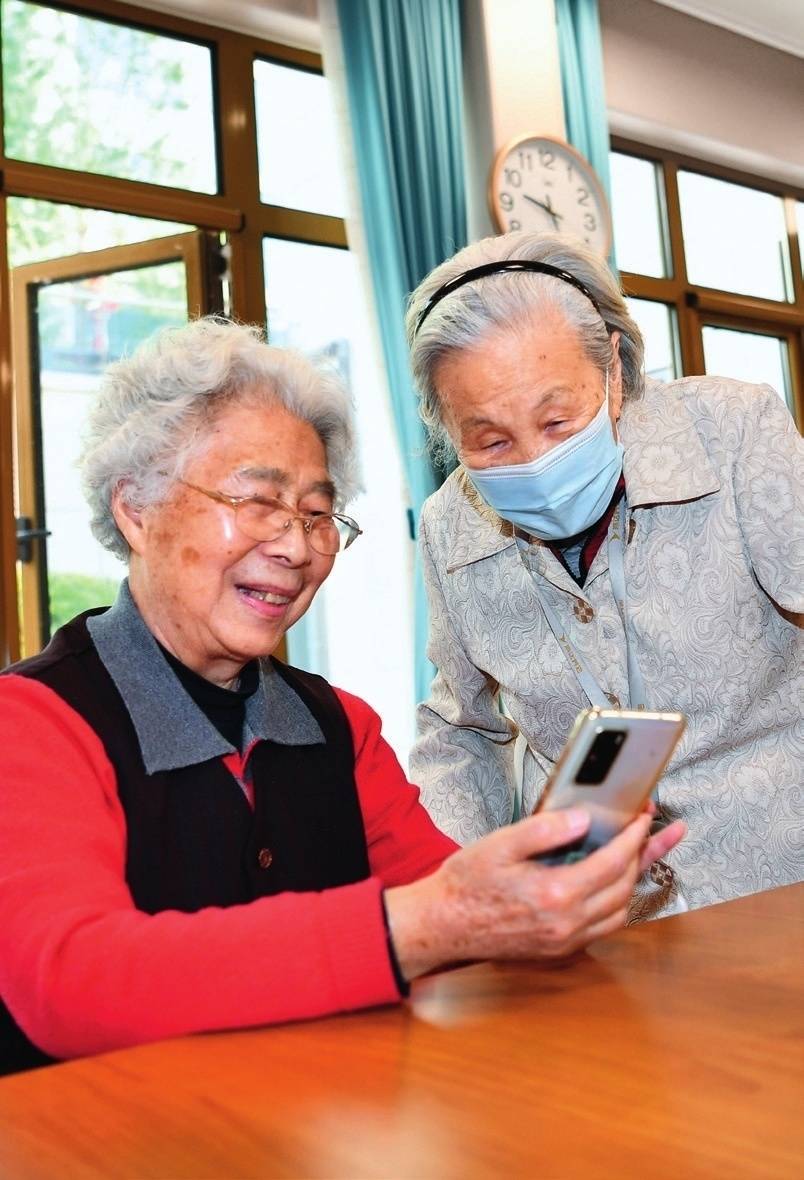 老人在位于河北三河的燕达金色年华健康养护中心老年活动室交谈(2022年5月18日摄)朱旭东摄 / 本刊