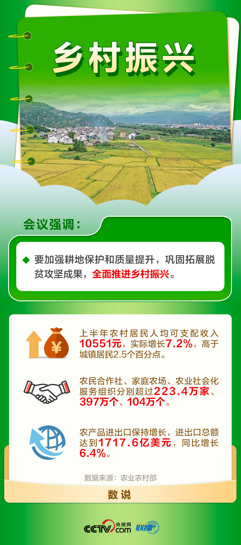 强国必先强农,农强方能国强。全面建设社会主义现代化国家,最艰巨最繁重的任务依然在农村,最广泛最深厚的基础依然在农村。2023年中央一号文件提出,全面推进乡村振兴,加快建设农业强国。此次会议再次提出巩固拓展脱贫攻坚成果,全面推进乡村振兴。