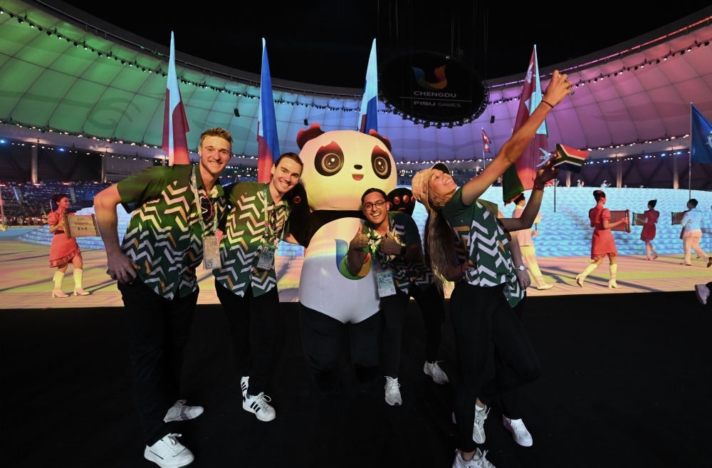 南非大学生体育代表团在开幕式上入场。