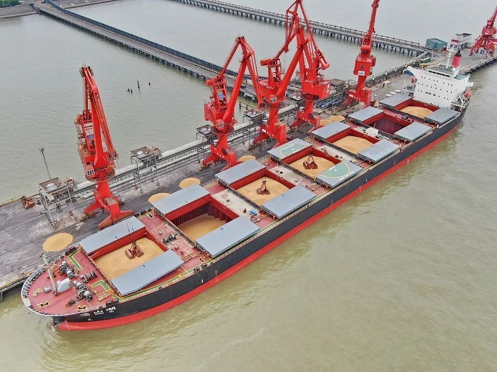 △2022年5月,巴西货轮运载54000吨大豆抵达江苏南通。