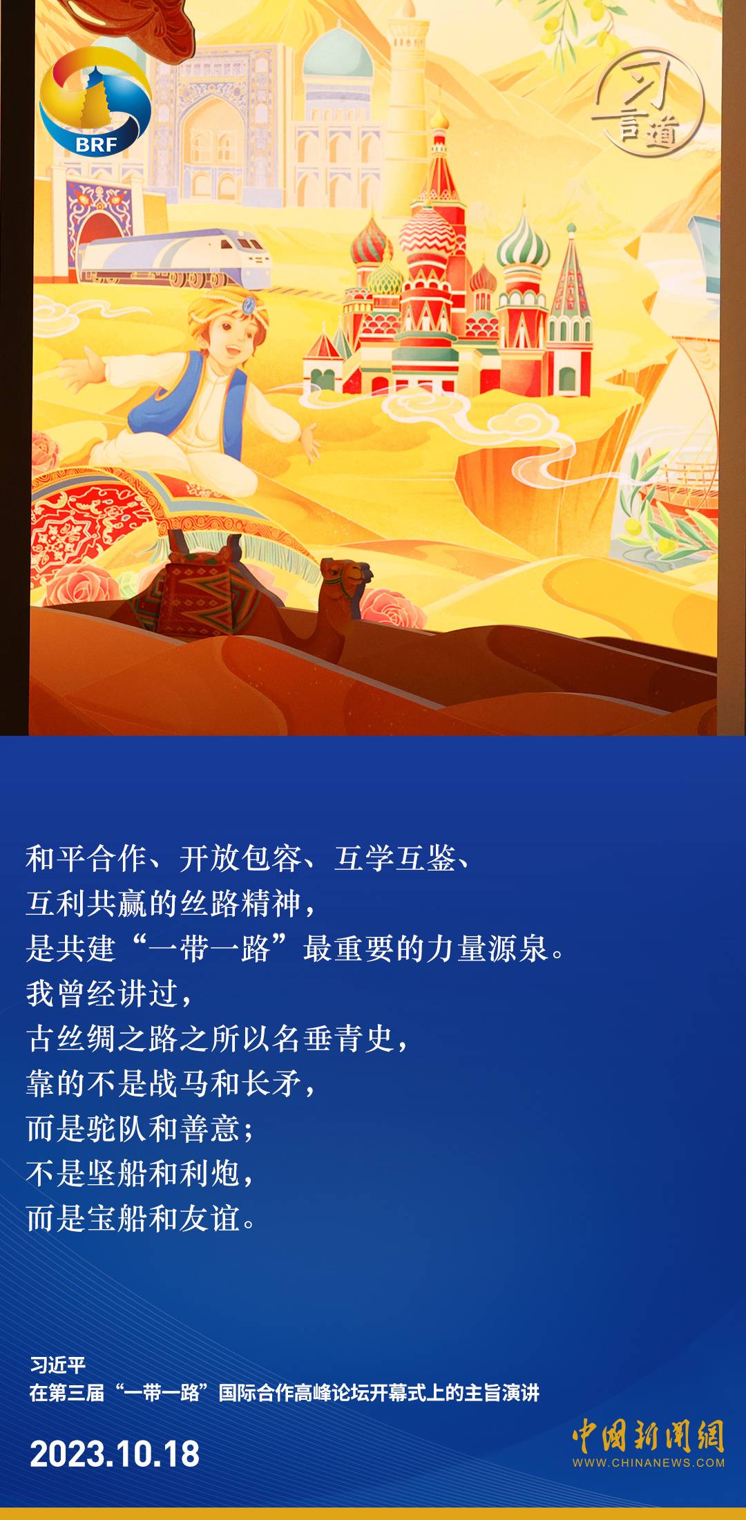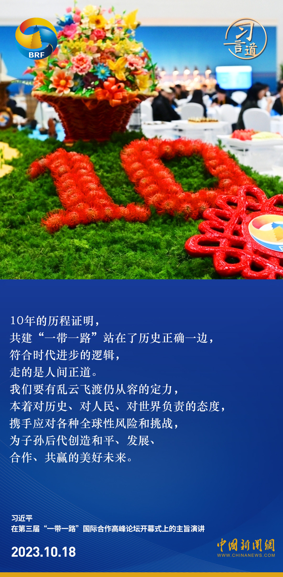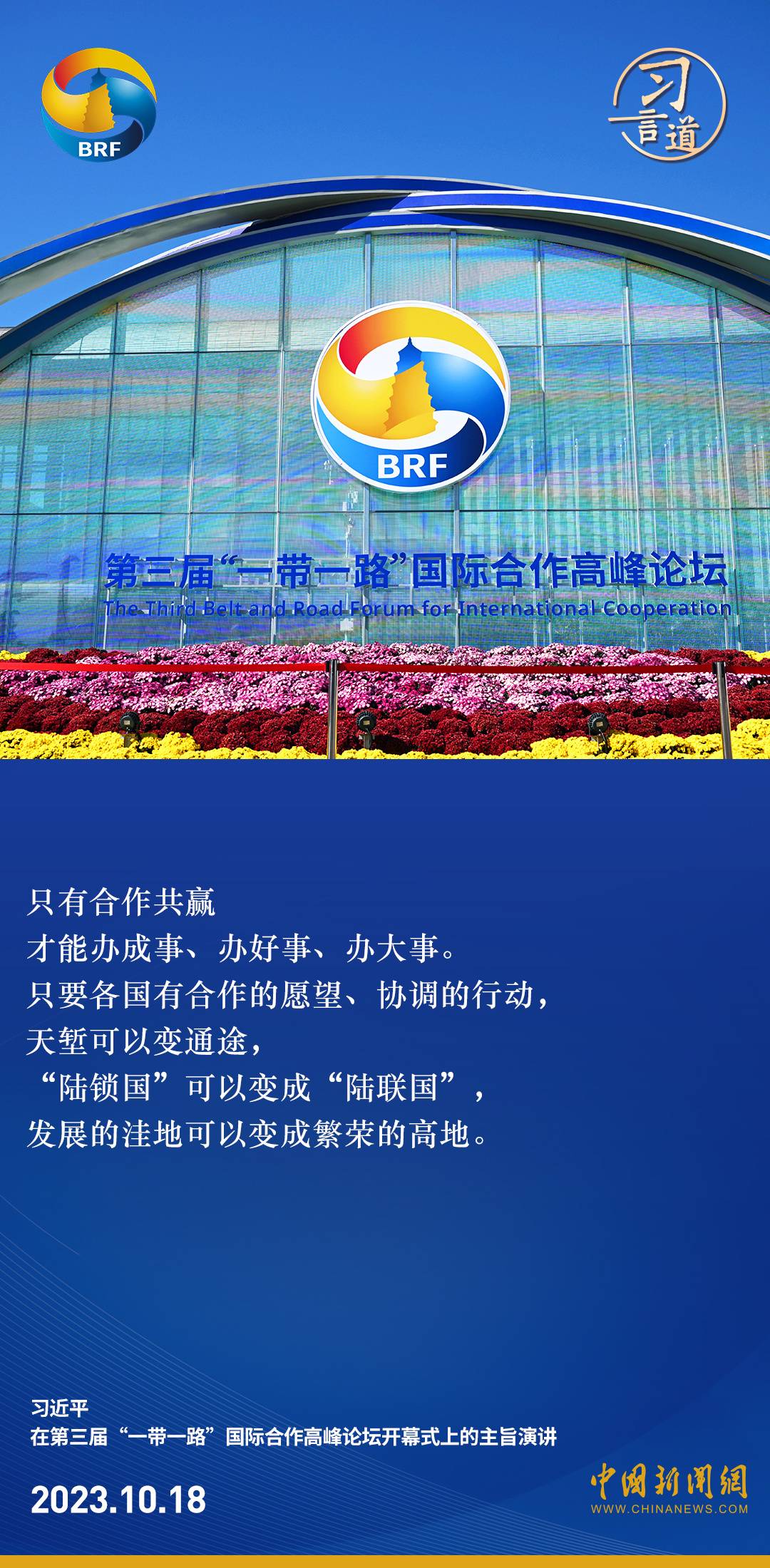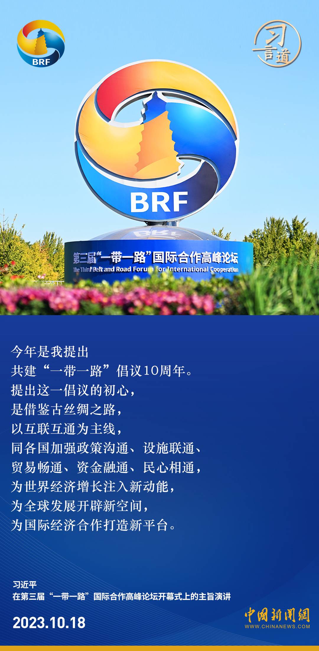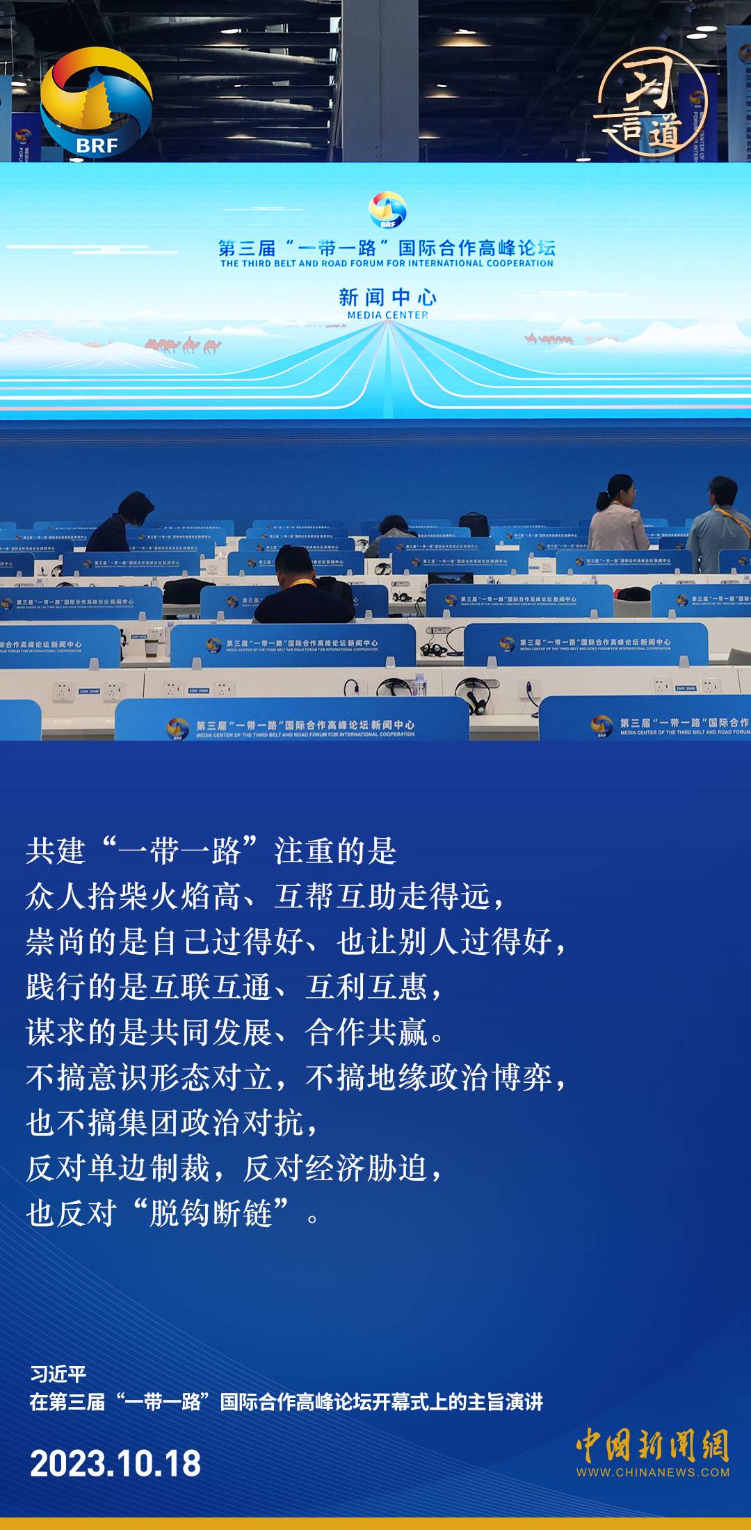 第三届“一带一路”国际合作高峰论坛开幕式于10月18日在北京举行。中共中央总书记、国家主席、中央军委主席习近平出席开幕式并发表主旨演讲。习近平指出——