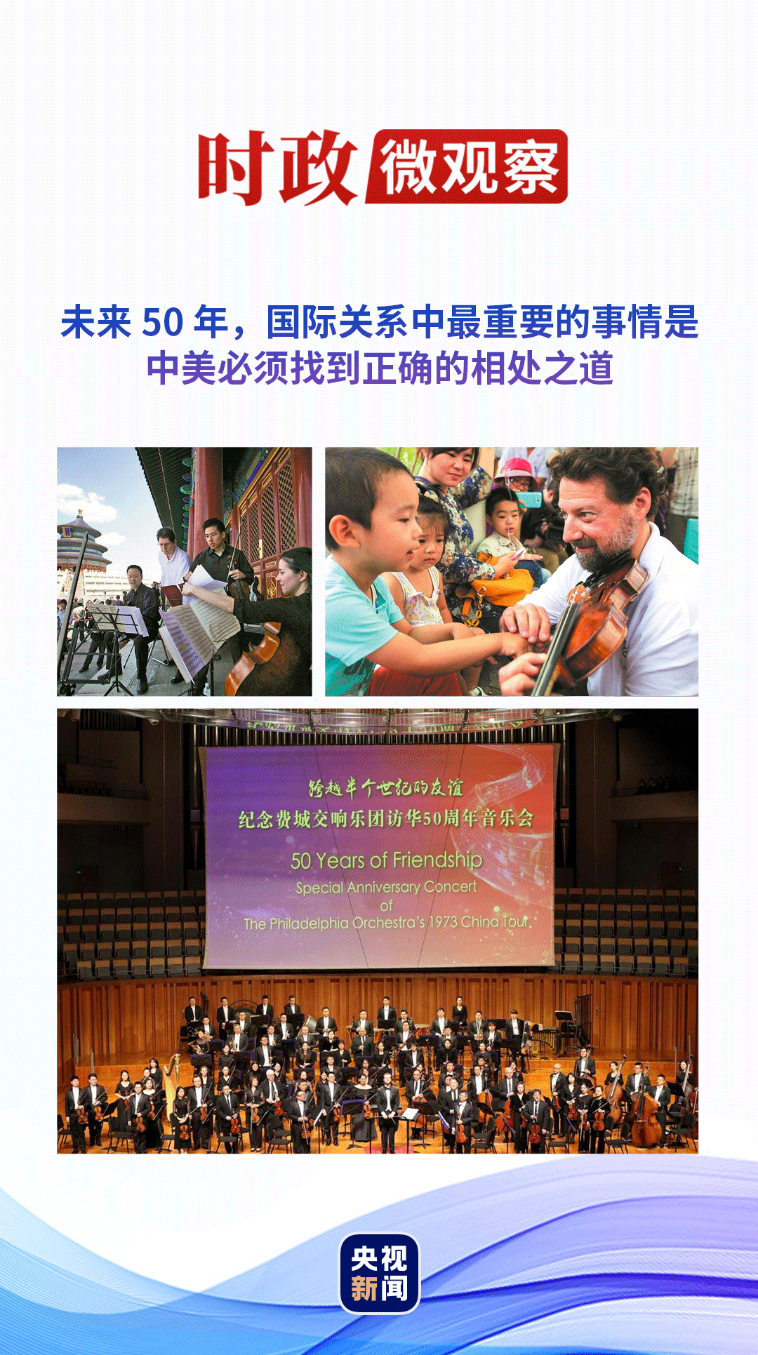 在复信中,习近平主席这样写道:50年后的今天,费城交响乐团和中国交响乐团及多国歌唱家一起在华演出,必将作为一段珍贵佳话载入史册。