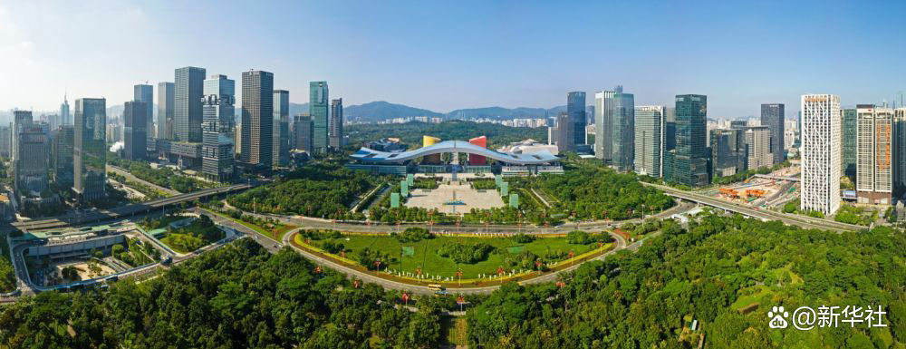 这是在广东省深圳市拍摄的深圳市民中心和莲花山公园一线(2020年10月2日摄,无人机照片)。新华社记者 梁旭 摄
