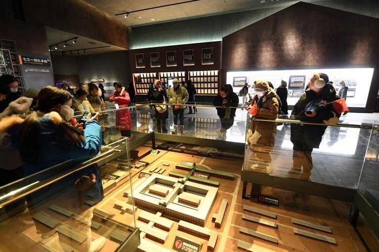 2024年1月15日,哈尔滨,游客参观侵华日军第七三一部队罪证陈列馆的展馆。