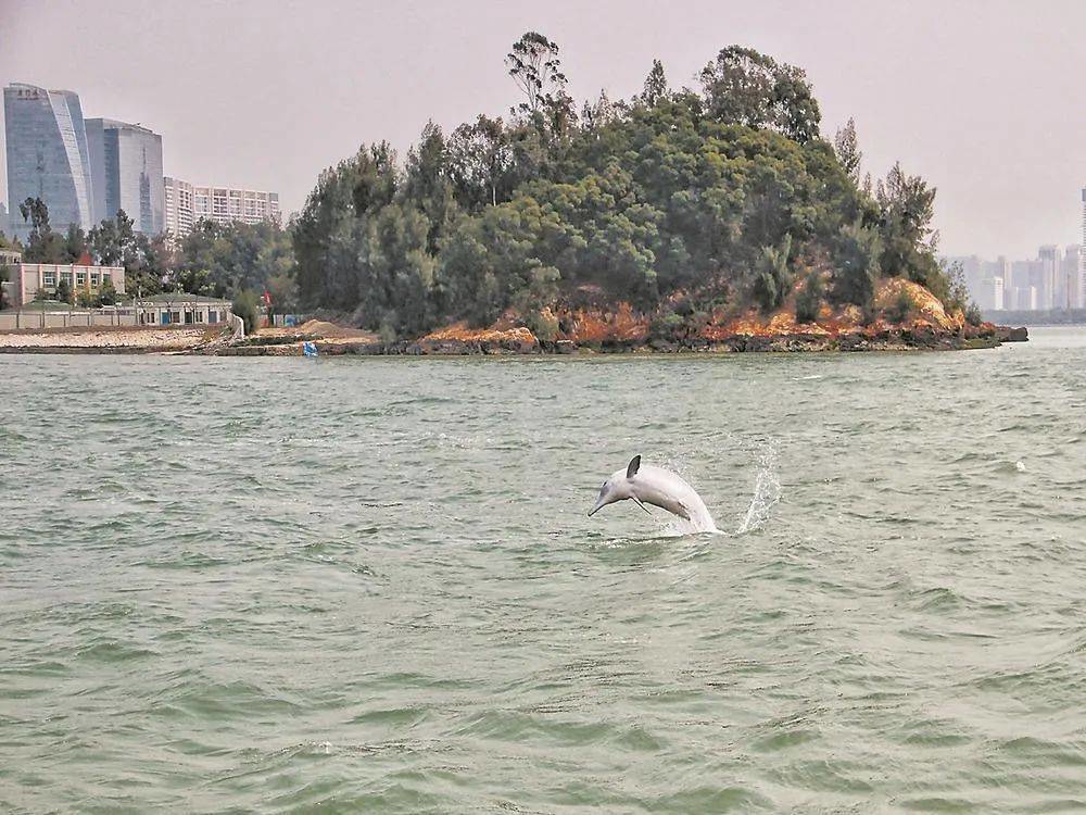 这是世界上唯一以“中华”命名的海豚,有“海上大熊猫”之称,在广西、广东、海南等地均有分布,但厦门是全国少有的能在城区海域看到中华白海豚的地方。