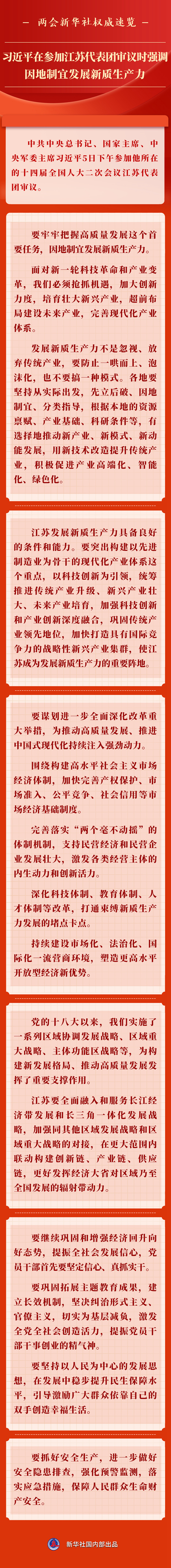两会新华社权威速览丨习近平在参加江苏代表团审议时强调 因地制宜发展新质生产力