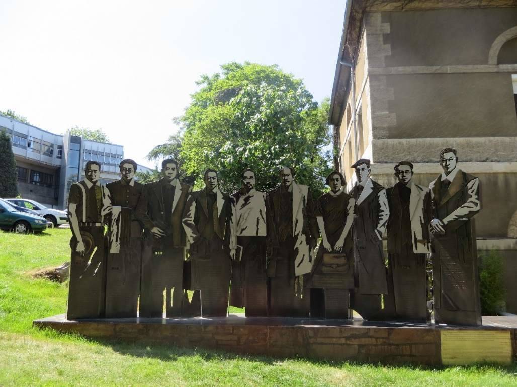 在里昂中法大学历史博物馆前方,屹立着广州市政府赠送的雕像。蔡元培、常书鸿等10位与里昂中法大学关系密切的中国学者眺望前方,注视着来来往往的留学生。