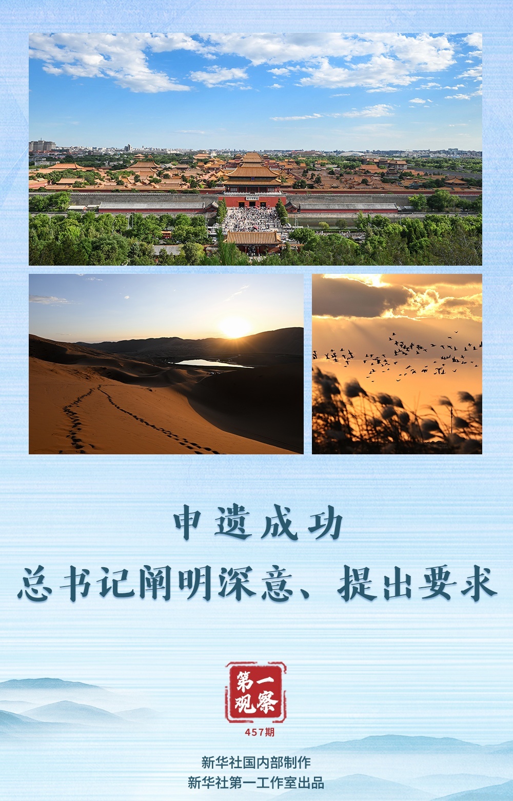 习近平总书记近日对加强文化和自然遗产保护传承利用工作作出重要指示,深刻阐释“北京中轴线——中国理想都城秩序的杰作”和“巴丹吉林沙漠-沙山湖泊群”、“中国黄(渤)海候鸟栖息地(第二期)”成功列入《世界遗产名录》的重要意义和时代内涵,对进一步做好文化和自然遗产保护传承利用工作提出要求。