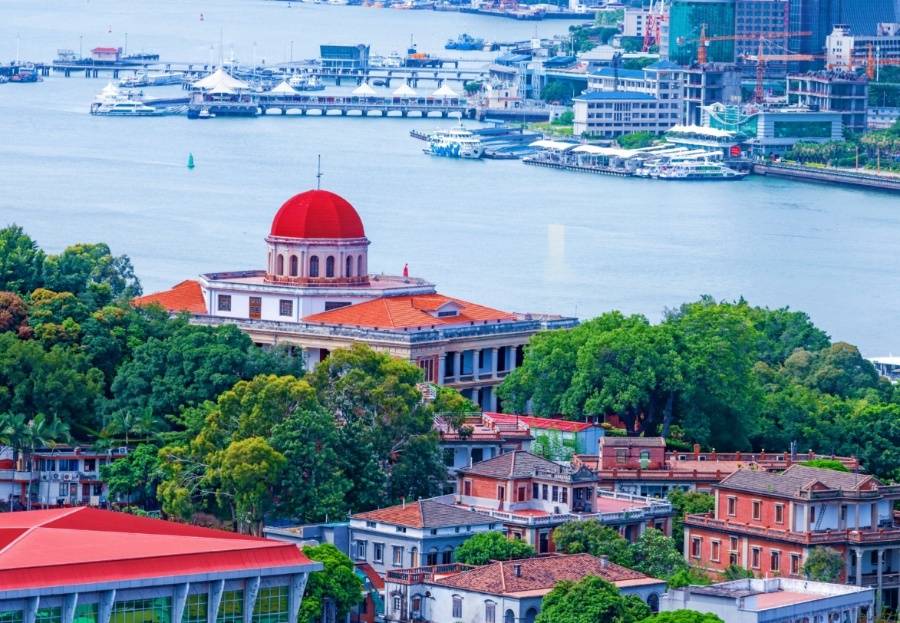 在绿意盎然的鼓浪屿上,有一座红色穹顶建筑引人注目。