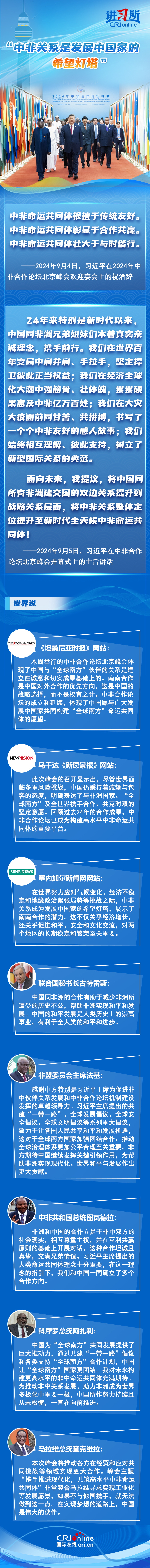 从宣布建立“新型伙伴关系”,到整体定位提升至“新时代全天候中非命运共同体”,成立24年的中非合作论坛不断推动中非关系实现跨越式发展,特别是新时代以来,中国本着真实亲诚理念,同非洲兄弟姐妹们携手前行,受到非方广泛称赞。非方各界认为,为推动非中关系发展、助力非洲成为世界多极化中重要一极,中国所作努力持续且从未松懈,中非关系是发展中国家的希望灯塔。