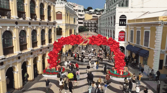 △澳门街头一片欢乐祥和的喜庆氛围。