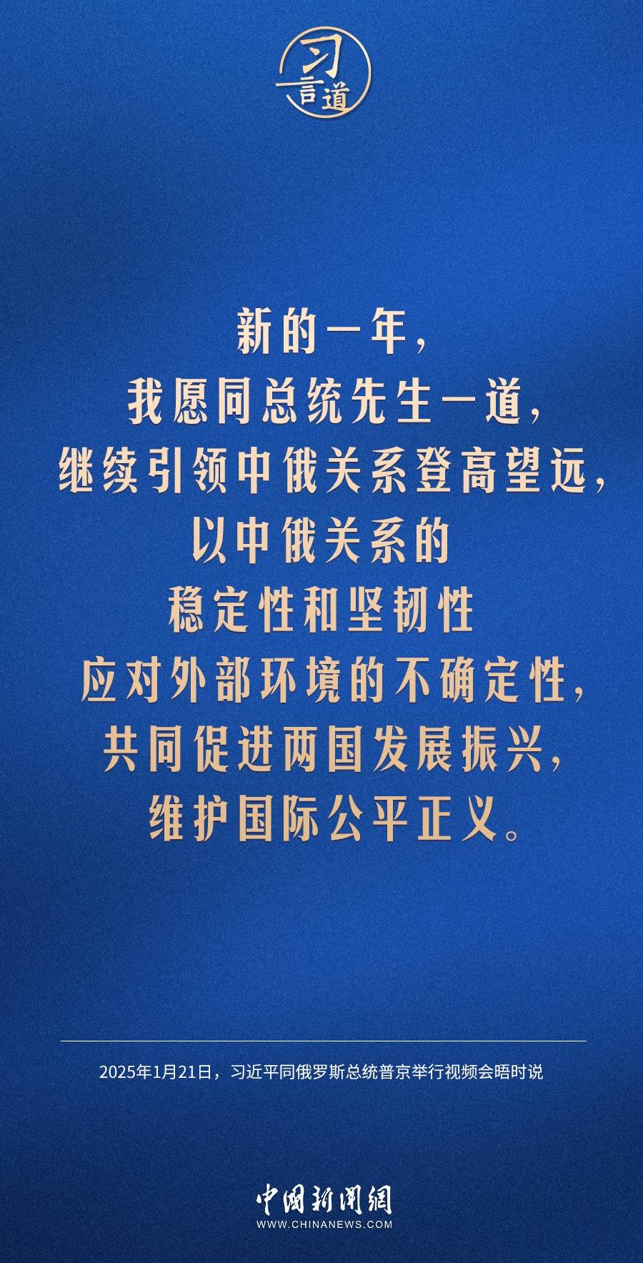 1月21日,国家主席习近平在北京人民大会堂同俄罗斯总统普京举行视频会晤。习近平指出——