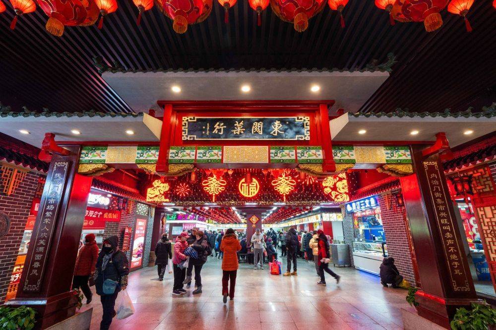 2025年1月22日,游客在沈阳故宫非遗年货市集游览消费。