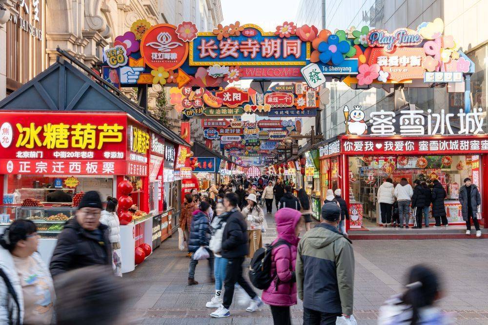 2025年1月22日,游客在沈阳中街长安寺胡同小吃街游玩。